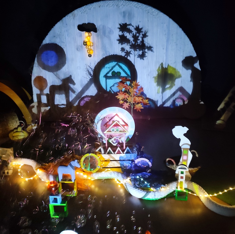 El espectáculo EXPERIENCIAS es un viaje sonoro, visual, sensorial y artístico dónde van surgiendo elementos que invitan a ser jugados y explorados con los cinco sentidos.