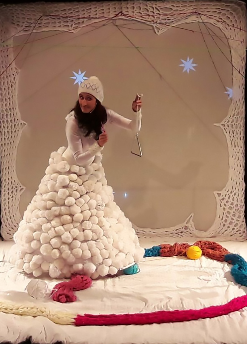«Lana para tejer y lana para jugar». Una oveja que nace, una araña que teje, una bufanda musical y una maraña de imágenes, despertará emociones y activará la curiosidad de los más pequeños. En este espectáculo la lana se convierte en elemento transformador de un espacio en blanco que poco a poco se va llenando de color. Descubriremos de una manera lúdica de dónde viene la lana y la infinidad de cosas que podemos hacer con ella.